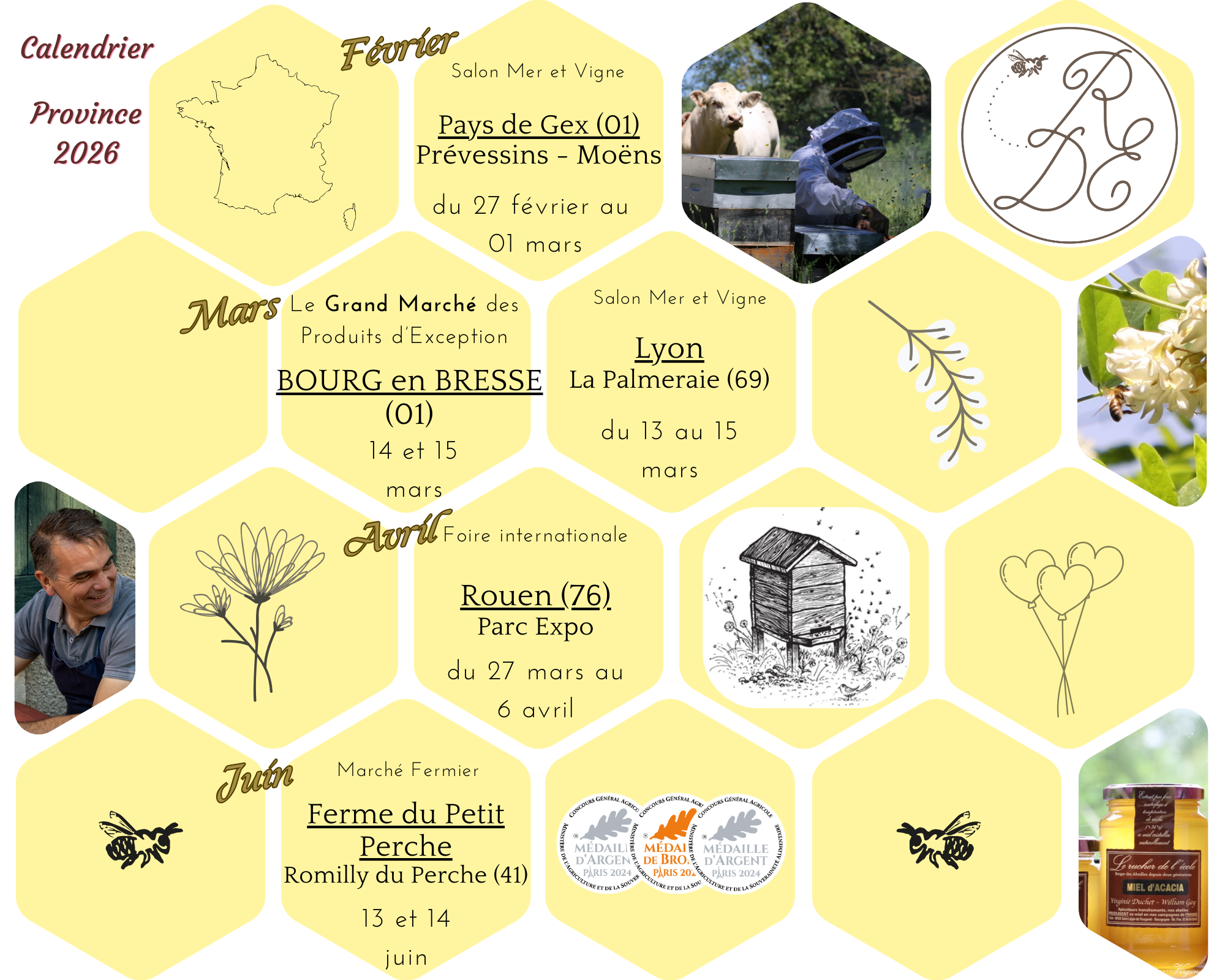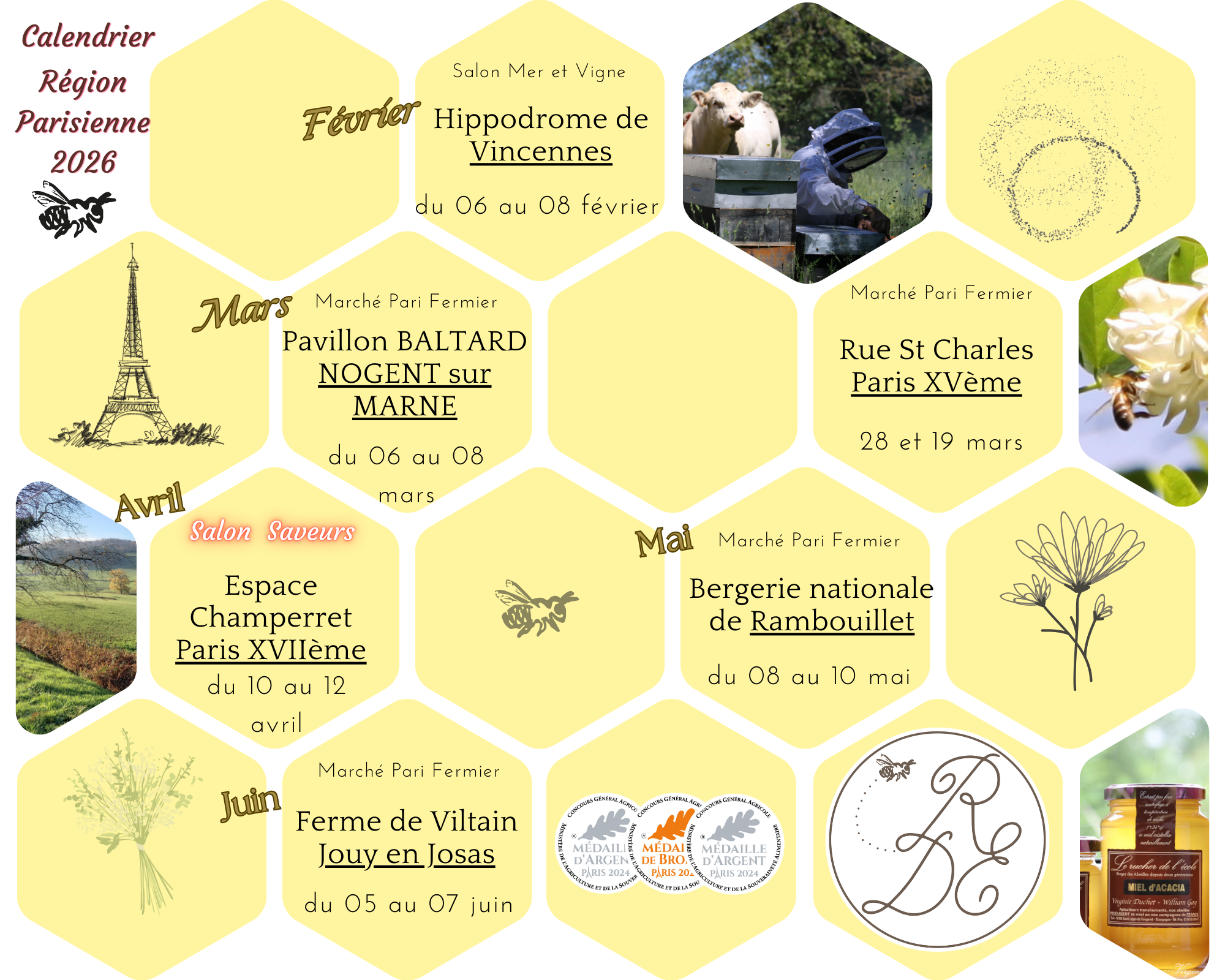 Comme à l'accoutumée, sous réserves d'annulation de dernière minute, nous nous retrouverons lors des marchés et salons organisés entre autres par Pari Fermier